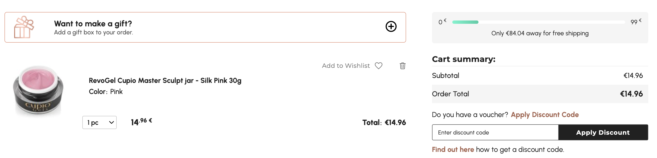 Válassza ki a terméket, amelyet meg szeretne vásárolni, és helyezze a kosárba. Ezután másolja a kedvezményes kódot a "Do you have a voucher?" ablakba, majd kattintson az "Apply voucher" gombra.
