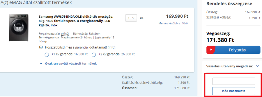 Kattintson a "Vásárlás" gombra, és másolja ki a használni kívánt eMAG kuponkódot. Ezután átirányítjuk a webáruházba.