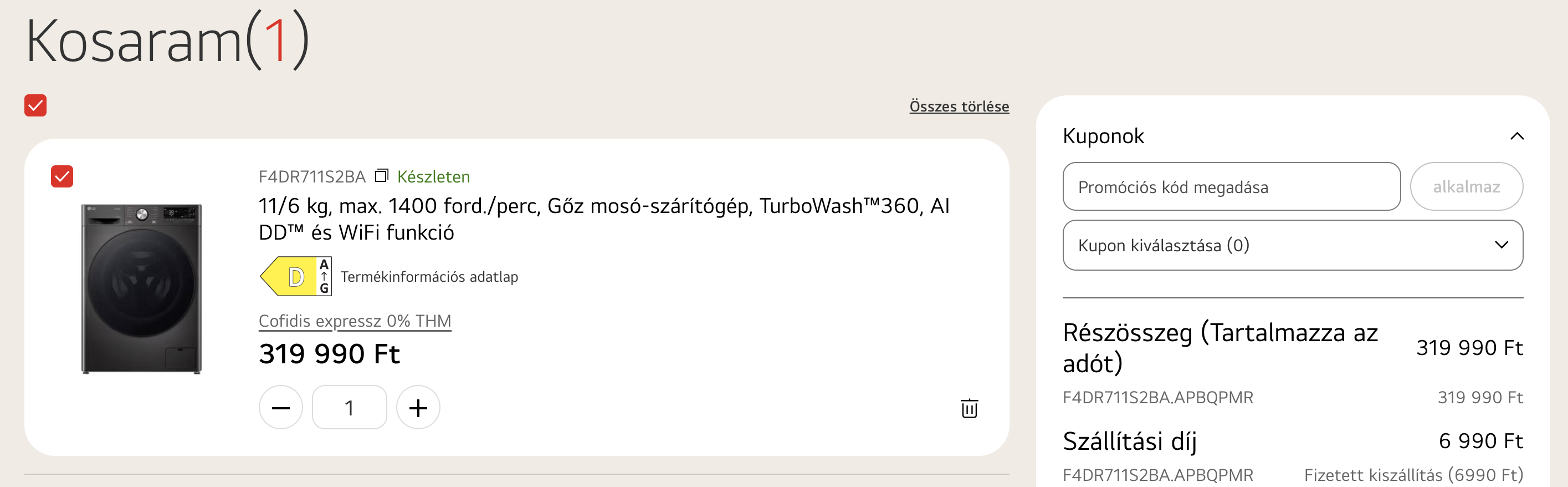 Legyen regisztrált felhasználó, és különféle kedvezmények várják. Öné lehet például egy kedvezményes LG kupon az első vásárlására, illetve ingyenes szállítás a rendeléseire.